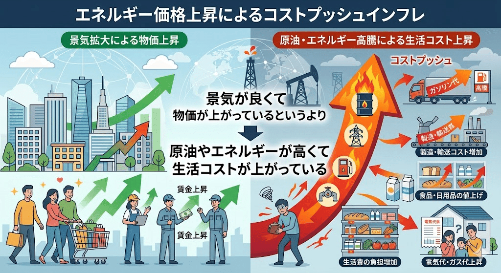 景気がよくて物価が上がっているというより、原油やエネルギーが高くて生活コストが上がっている