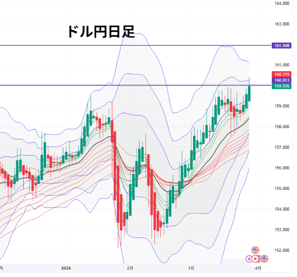今のドル円は、心理的な節目である160円付近が強く意識され突破しています。
