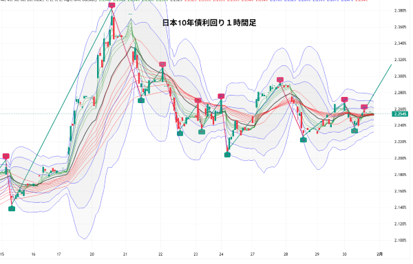 来週の1時間足は、4本のラインを軸にします。