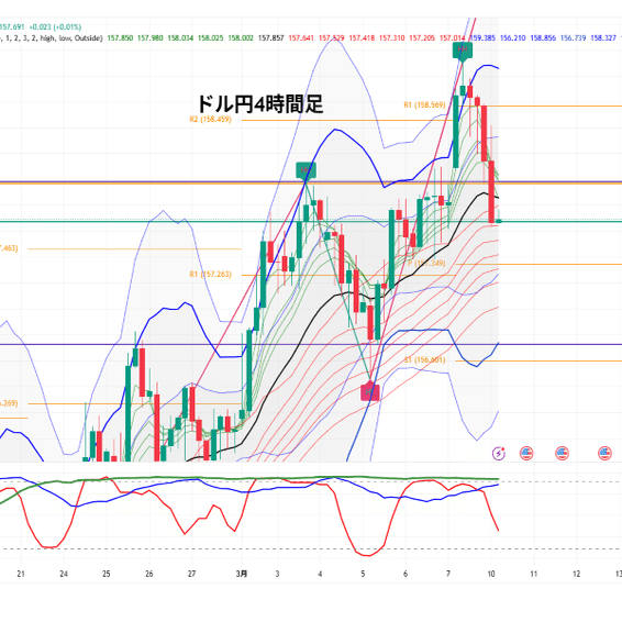 【3月10日|ドル円】158円台後半から急反落。今日は“戻り売り優先”か、それとも157円台の押し目を拾うか