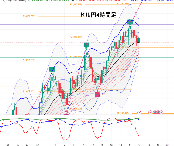 【3月17日|ドル円】反発しても安心できない。今日は159.28と158.90に注目