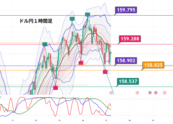 「押し目買いの日」というよりは、戻り売り優勢を基本線にしつつ、159.28を明確に超えるかどうかを確認する日として見ていきたいです。
