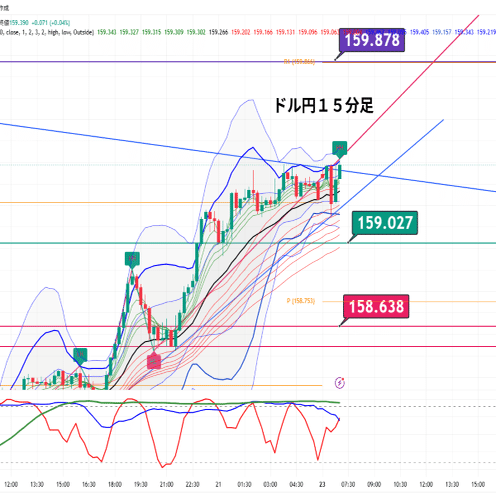 15分足・1時間足の上昇基調が続くなら、159.026前後は押し目候補になりやすいです。