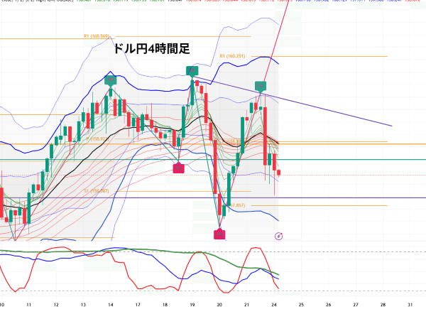 4時間足では、昨日の急落で相場の空気がかなり変わりました。