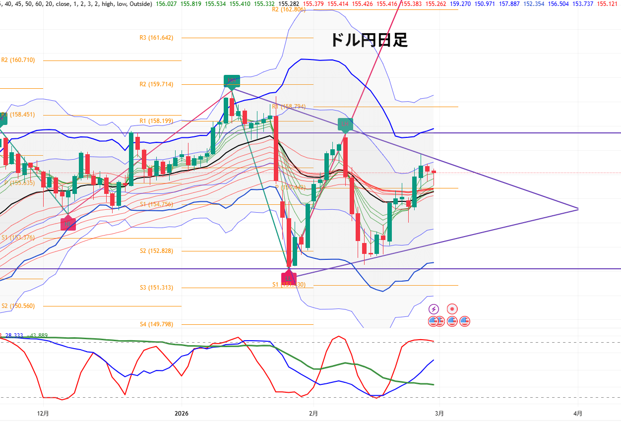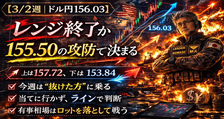 【3/2週|ドル円156.03】中東有事でレンジ終了か。155.50攻防から始まる今週のスイング戦略