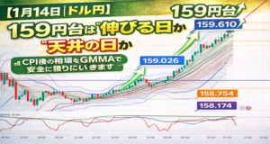 保護中: 【1月14日|ドル円】159円台は“伸びる日”か“天井の日”か。CPI後の相場をGMMAで安全に獲りにいきます