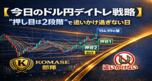 おはようございます、専業トレーダーkomaseです。今朝もいつも通り、朝いちでチャート→次にファンダの順で確認し、今日のデイトレ戦略を「迷わない形」にまとめました。 結論から言うと、ドル円は引き続き 152〜154のレン […]