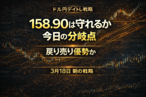 【3月18日朝のドル円戦略】158.90は守れるか。戻り売り優勢で見る今日の分岐点