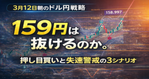 【3月12日朝のドル円戦略】159円は抜けるのか。押し目買いと失速警戒の3シナリオ