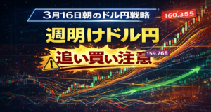 【3月16日朝のドル円戦略】159.768を抜けるか反落か。窓開け後の戻りで見る今日の分岐点