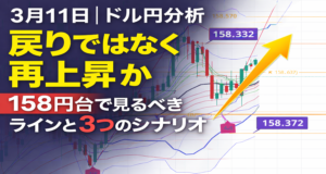 【3月11日|ドル円分析】戻りではなく再上昇か。158円台で見るべきラインと3つのシナリオ