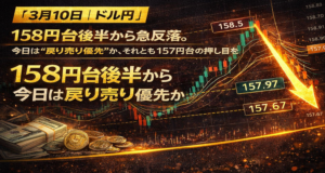 【3月10日|ドル円】158円台後半から急反落。今日は“戻り売り優先”か、それとも157円台の押し目を拾うか